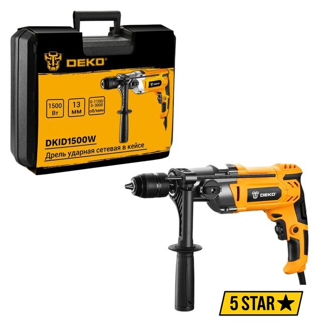 Комплектация | - Ударная дрель - 1 шт.- Вспомогательная рукоятка - 1 шт.- Ограничитель глубины - 1 шт.- Инструкция- Кейс |