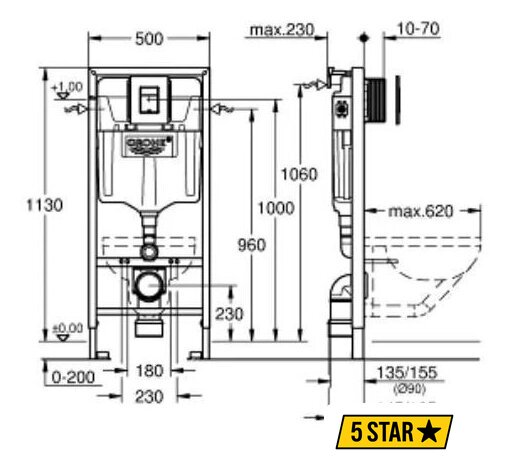 Отверстия под унитаз | 180 мм, 230 мм |