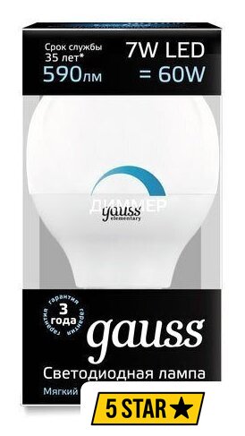 Эквивалент лампы накаливания | 60 Вт |