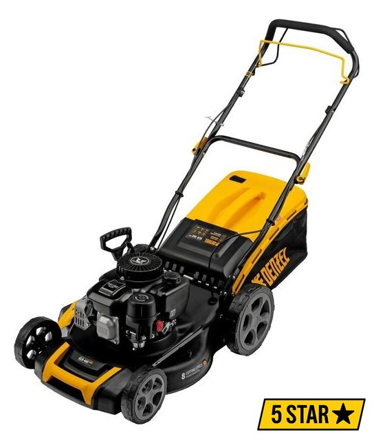 Комплектация | - Газонокосилка в сборе с ножом и колесами- Травосборник- Дефлектор бокового выброса- Нижняя часть рукоятки- Верхняя часть рукоятки- Комплект крепежа- Ключ свечной- Фиксатор троса- Заглушка для мульчирования- Руководство по эксплуатации с гарантийным талоном |