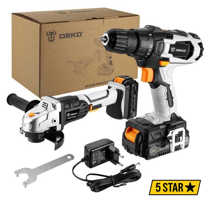 Комплектация | - Дрель-шуруповерт;- Углошлифовальная машина;- Вспомогательная ручка;- Ключ;- Батарея - 2 шт;- Зарядное устройство;- Инструкция;- Коробка. |