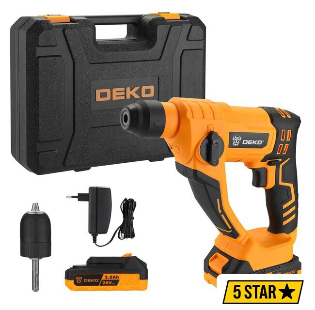 Комплект поставки | - Перфоратор аккумуляторный – 1 шт;- Сверлильный патрон - 1 шт;- Аккумулятор увеличенной емкости 2 Ач – 2 шт;- Зарядное устройство – 1 шт;- Инструкция;- Кейс. |