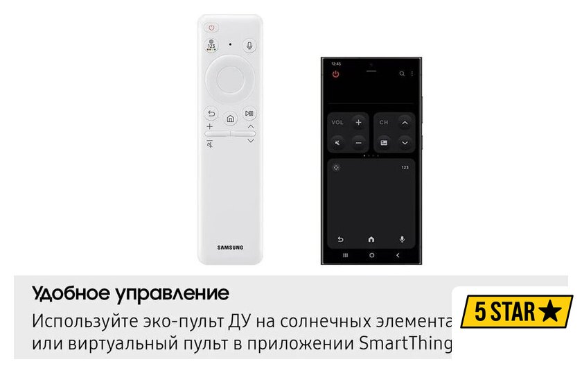 | Пульт в комплекте | Samsung TM2361E – с голосовым управлением, на солнечной батарее |